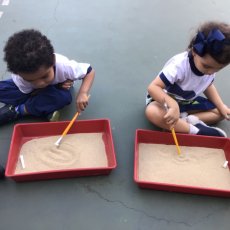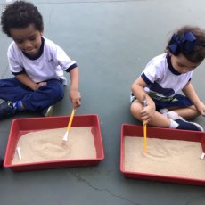Essa atividade foi elaborada com intuito de promover a criatividade, a expressividade, a noção espacial e a coordenação motora, além de ampliar o repertório de imagens e movimentos e possibilitar a experimentação de diversos materiais de desenho. Como eles se divertiram durante a atividade.